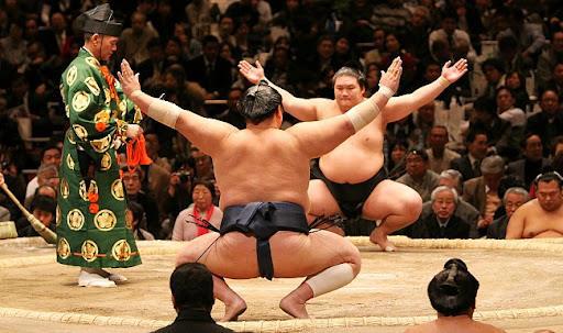 Широко поставленные в этом положении руки – это не о физическом развитии бойцов, а о духовном. Сумо – насквозь ритуализированная сакральная борьба, посвящённая религиозным ценностям. В ней каждое движение имеет своё «подводное, духовное» обоснование.