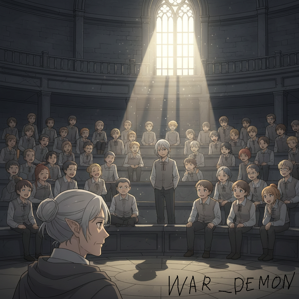 На следующее утро я впервые переступил порог «Зала Отражённого Света». Это был не класс. Это был круглый амфитеатр под открытым небом, но перекрытый куполом из сияющей магии, который показывал звёздное небо, независимо от времени дня. Вокруг сидели два десятка учеников. Их одежды были просты, но безупречны по крою и ткани. Их позы излучали врождённую уверенность.
