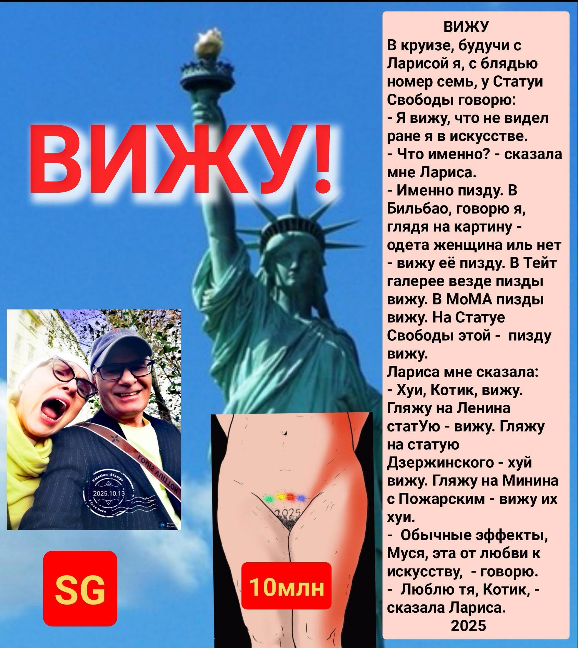 В круизе будучи с Ларисой, я бляди номер семь у Статуи Свободы говорю: