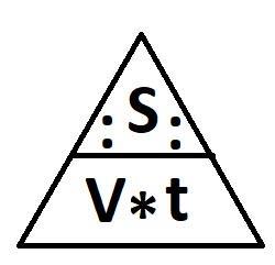 Где s расстояние , v скорость и t время. s=v*t ;v=s/t ;t=s/t .