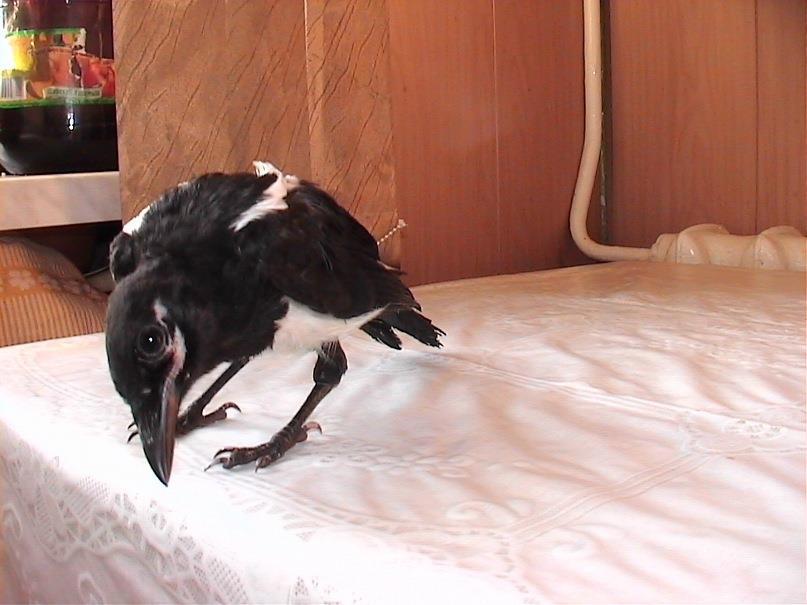 Вороны и сорока наполняли жизнь динамикой, движением и суматохой. Они орали как оглашенные, требуя пищи, и их открытый клюв сразу переходил в широкую глотку, что упрощало кормление. Потом они уже стали немного летать по квартире, а когда научились летать, то их выпустили, но не с балкона, а с земли, чтоб они не ударились, и не упали с высоты при первом полете вне квартиры.