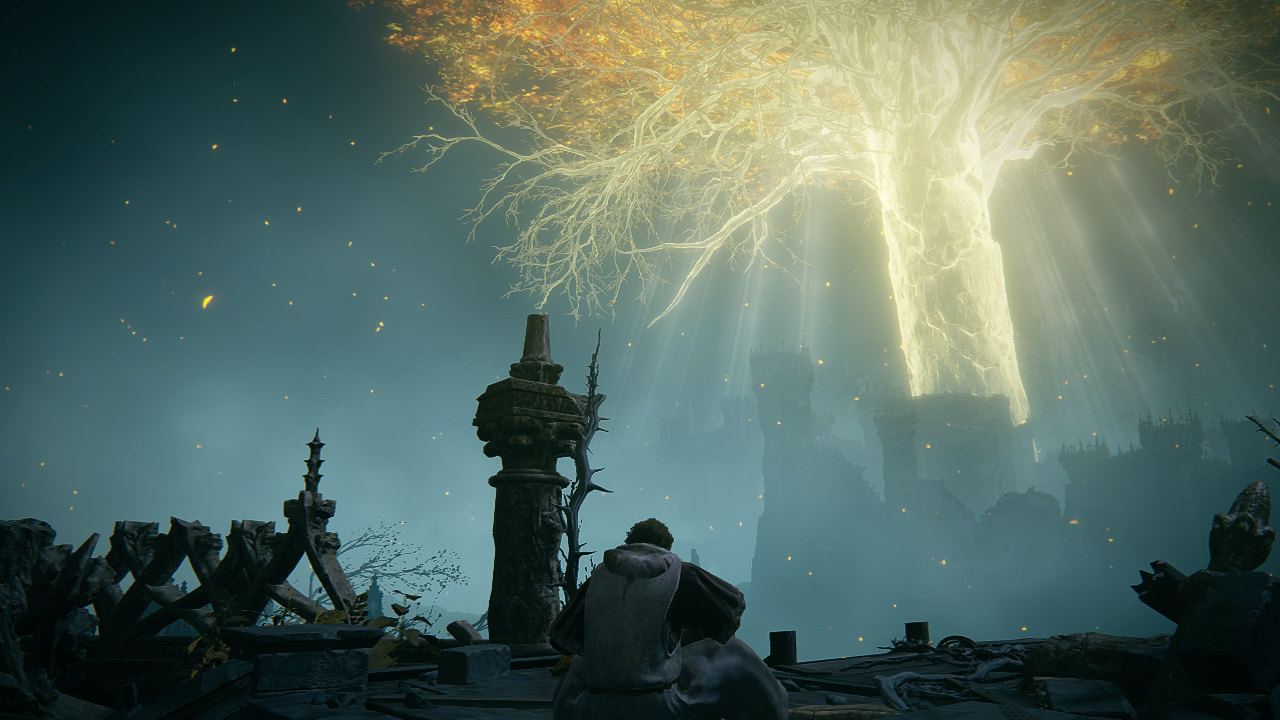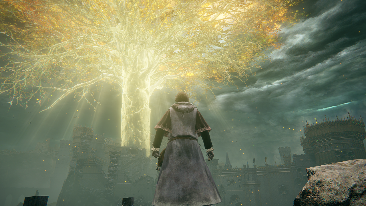 Выйдя наружу я обомлел. Огромное золотое дерево возвышающееся над огромной полу-разрушенной крепостью. Это уже не просто что-то напоминает, это прямо кричит о том куда я попал. Элден, мать его, ринг. Грёбаное темное фэнтези с большой буквы…