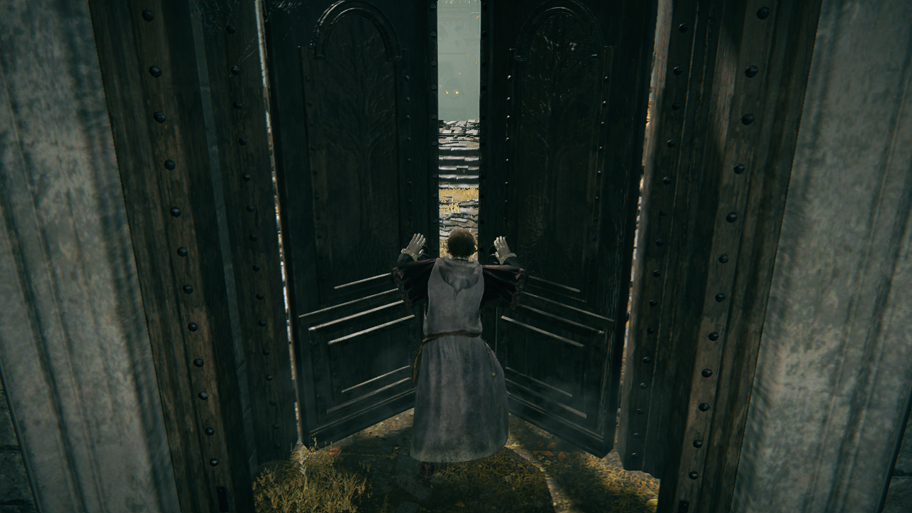 Я конечно понимаю, что всё будет не так просто, но в смешанных чувствах почему-то преобладает некоторое воодушевление, хотя и растерянности с грустью хватало. Ладно, нужно идти, ложу руки на массивные деревянные ворота и с умеренным усилием начинаю их открывать.