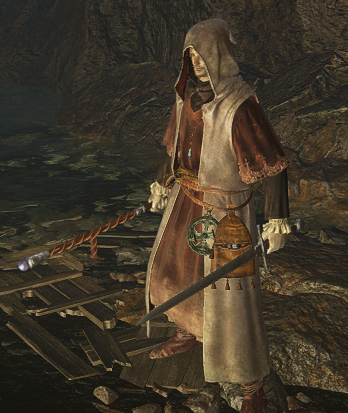 Я заметил, что руки мои явно не "мои", черты лица на ощупь отличаются, цвет кожи другой, какой-то сероватый(или из-за окружения кажется?), да и физически новое тело явно покрепче чем моё родное. У меня есть короткий меч, лёгкий деревянный щит, посох с фиолетовым камнем, секстант, подсумок с какими-то кристаллами, парой свитков и золотым семечком, на шее висит кулон с ещё одним голубоватым камнем, одет в коричневую робу, под которой темно-коричневая одежда с рукавами, и над которой светлый плащ без рукавов.