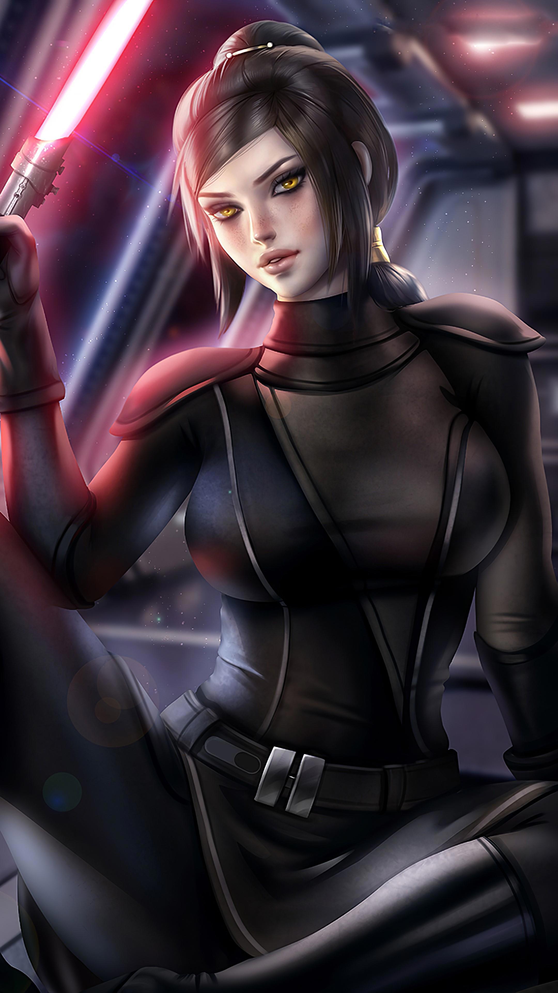 Рядом с мужчиной из воздуха появилась красивая девушка в черном облегающем костюме, в руках у которой тоже был световой меч.