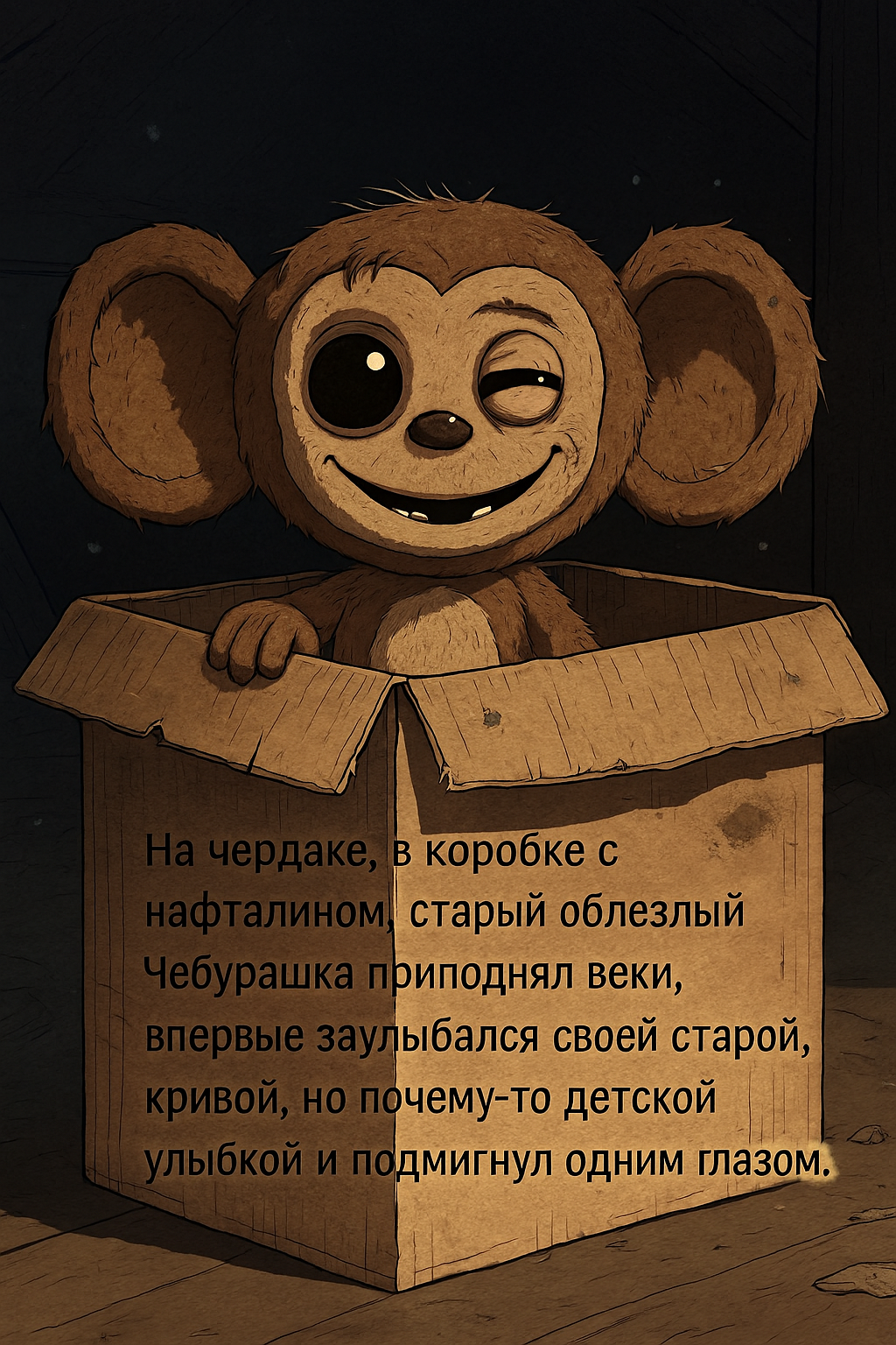 Гена научился хранить её в себе так, что даже близкие не замечали. Вечерами он сидел на чердаке, доставал коробку с нафталиновым запахом, открывал её и смотрел на того самого Чебурашку. Кривые уши, запавший глаз, запах старости. «Ты — мой крест», — тихо говорил он и закрывал крышку.
