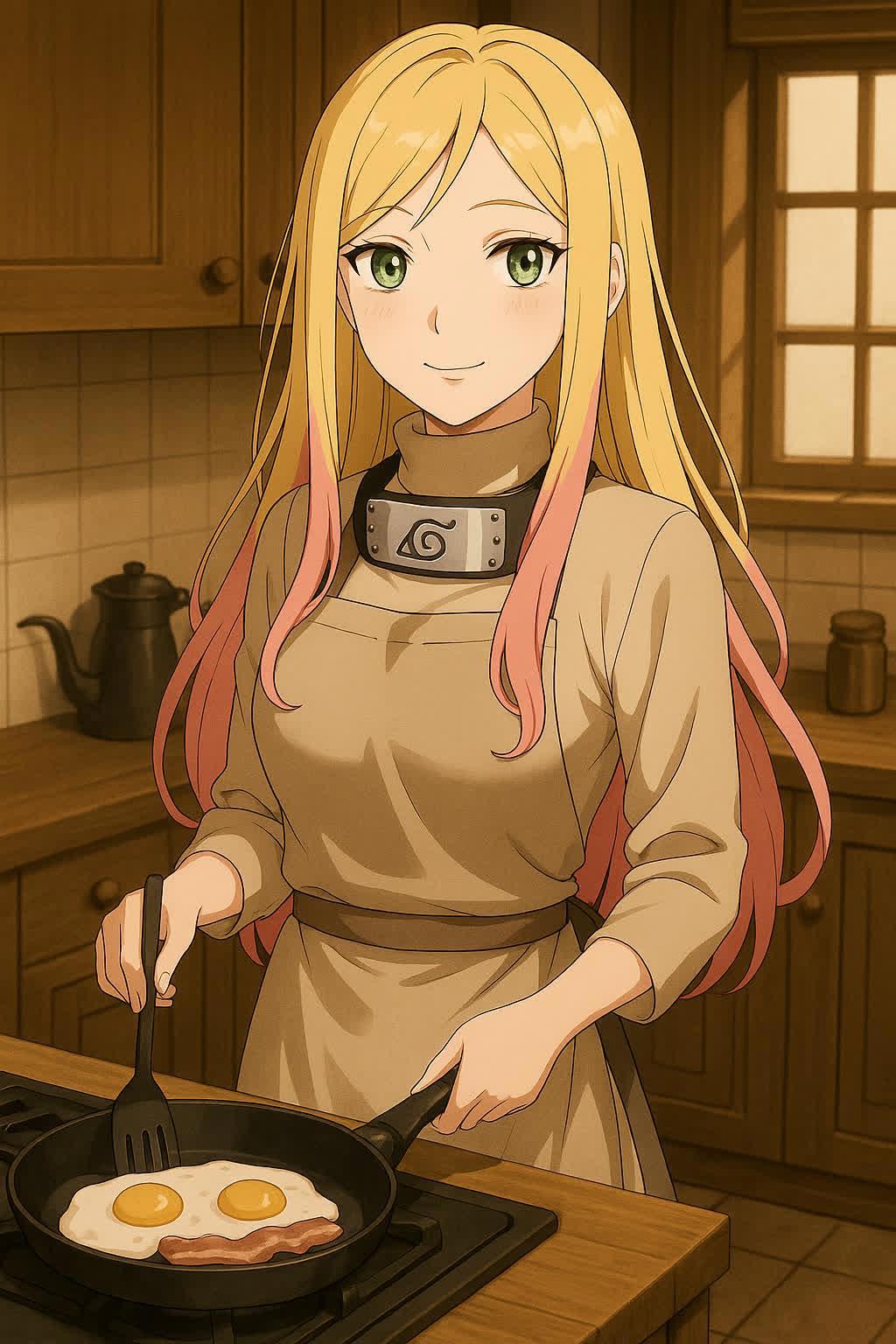 Она сняла сковороду с плиты, и развернулась к Наруто. У Наруто не нашлось слов. Саэко была одета в халат с высоким воротником, скрывавшим шею. Но когда она развернулась, на её шее был протектор. Протектор шиноби Конохи…