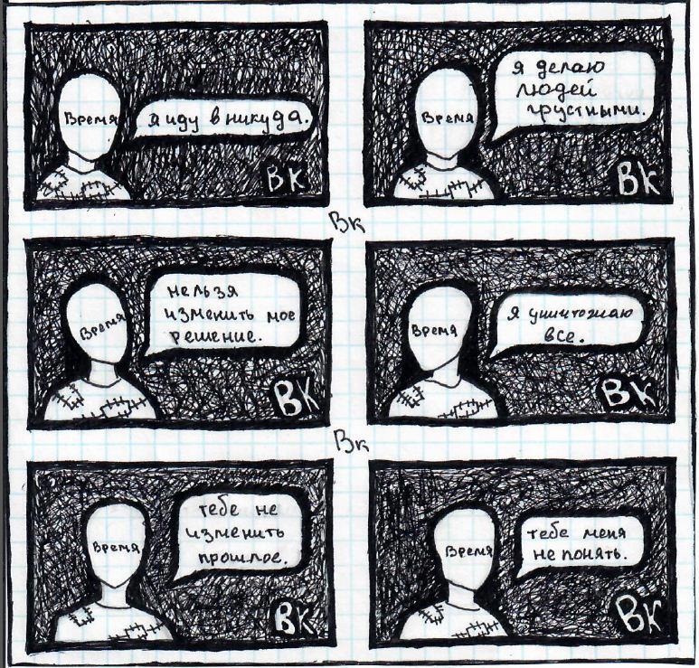 Объясним смысл комикса и этих подписей с позиции обезличенности времени и его детерминации. Эти слова могут означать следующее: