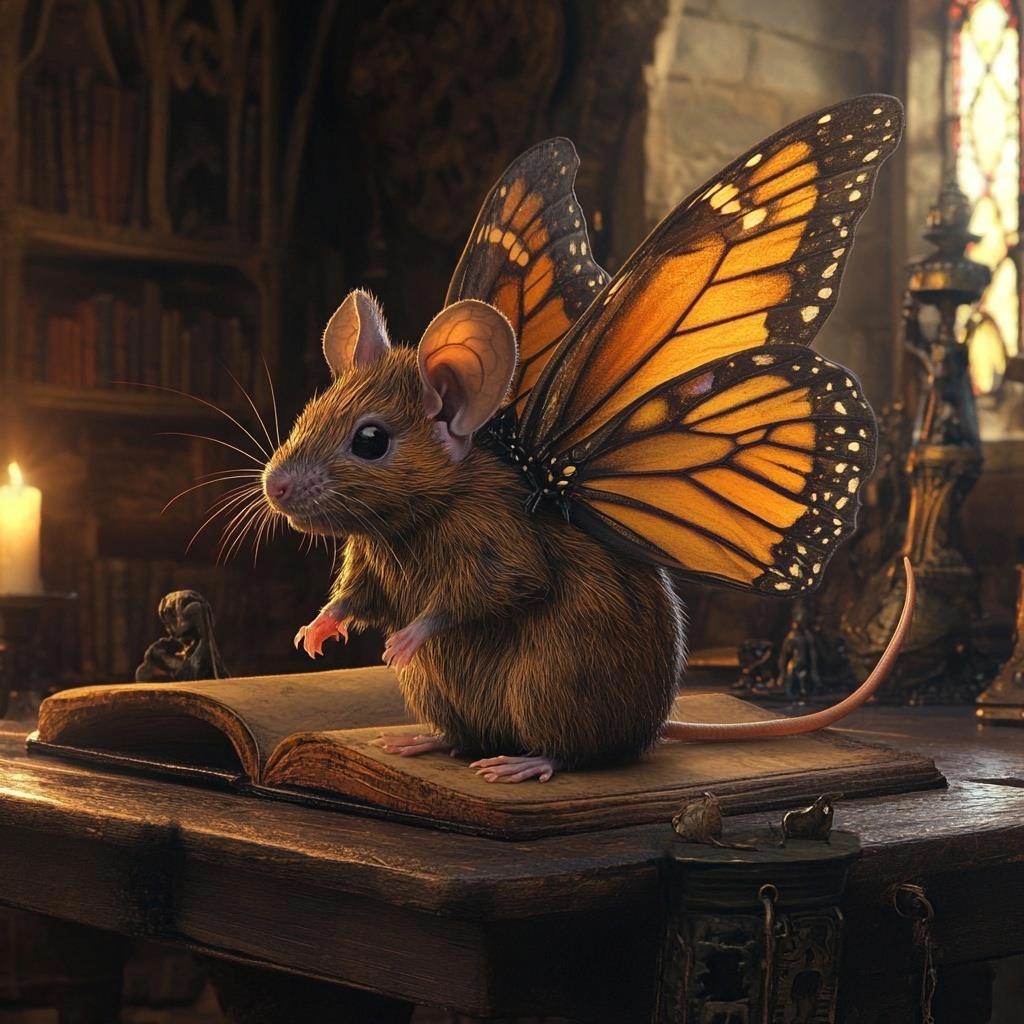 Из коробки с писком выбралось до дрожи милое существо, являющее собой сплав мышонка и бабочки. К пушистому серому тельцу прилагались крупные разноцветные крылья, которые запросто поднимали его в воздух.
