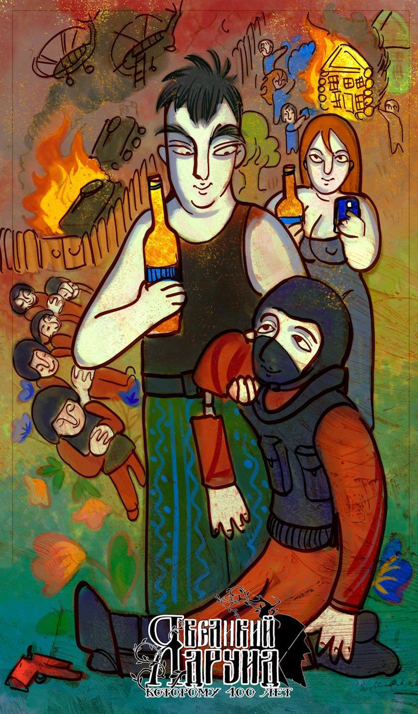 — Я всё на телефон снимаю! Вам это рук не сойдёт! — прокричала Любава, и к ней подбежал солдат с целью вырвать телефон, но, получив кулачком в рожу, распластался на земле.