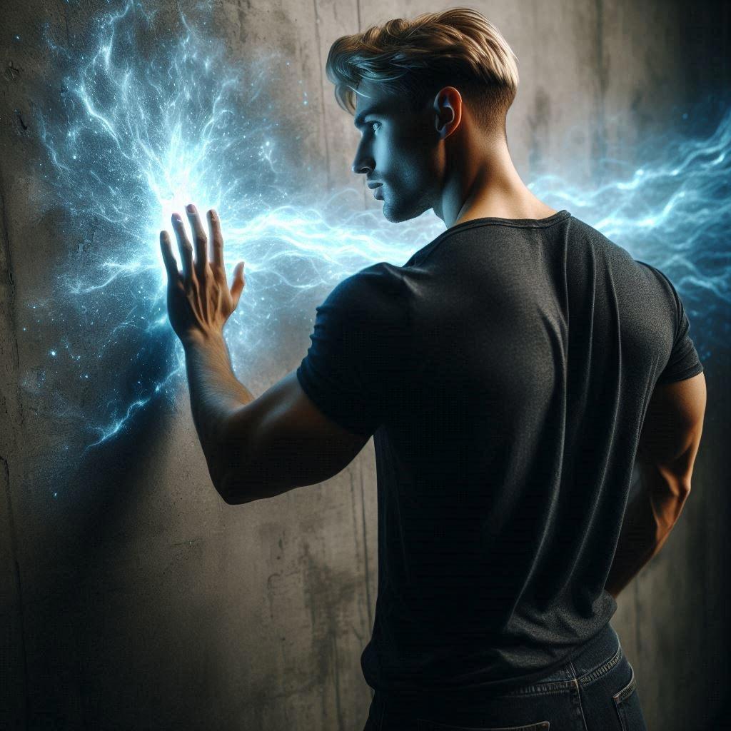 Подойдя к стене, парень коснулся её, из-под руки во все стороны стало расползаться тусклое свечение, которое быстро заполнило всё пространство стены.