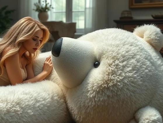 Открыв глаза, откинула свои растрёпанные светлые локоны назад и увидела большую чёрную штуковину на белом фоне. Приподнялась, упёршись о белое лохматое тело гигантского медведя, которого мы вчера подарили имениннице.
