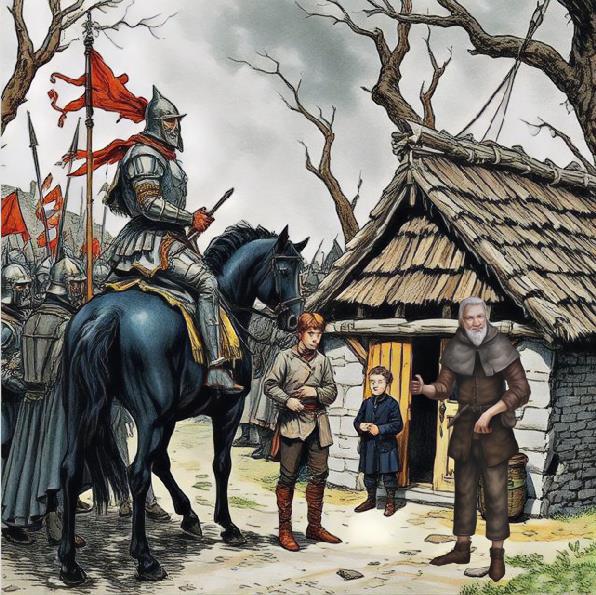 Барон , не слезая с коня , высокомерно оглядел хижину и самого Йохана , стоявшего на пороге .