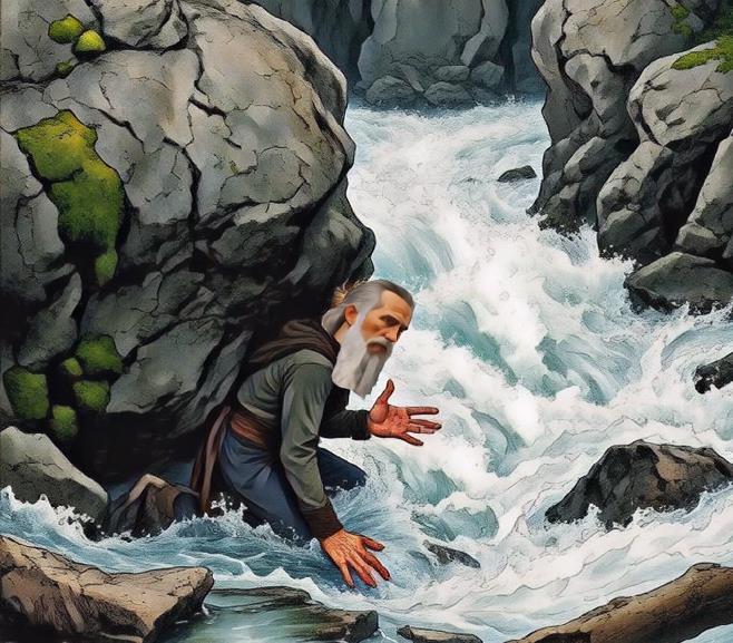 Йохан понял — пока река в смятении , её перейти не получится . Он встал на колени , прислушиваясь не к воде , а к огромному , покрытому мхом валуну у самого потока . Йохан , привыкший различать в тишине самые необычные звуки — в треске угля или в шёпоте пламени , — приложил к нему ухо . И он услышал . Глубоко внутри камня звучала долгая , чистая , как горный лёд , мелодия — отзвуки древнего ледника , породившего эту реку .