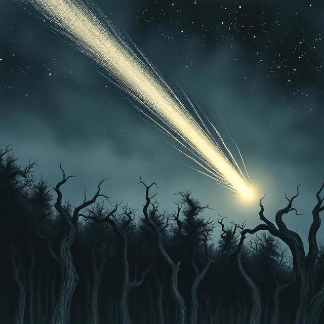Однажды , осенней ночью , когда воздух уже пахнул первым инеем , небо над лесом озарилось светом . Земля под ногами Йохана содрогнулась , а с неба посыпался странный пепел , пахнущий обожжённым металлом и… чем-то горьким , как полынь . Падающая звезда не просто прочертила полосу вдалеке на небе , а целый огненный шар , ослепительно-белый , с грохотом , похожим на раскаты грома , пронесся над вершинами деревьев и рухнул где-то в самой глухой лесной чаще , в местности , которую в народе называли — «Чёрным Ельником».