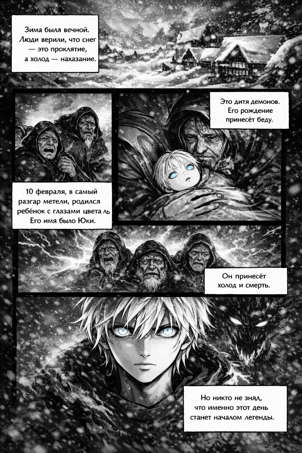 Зима была вечной. Люди верили, что снег — это проклятие, а холод — наказание. 10 февраля, в самый разгар метели, родился ребёнок с глазами цвета льда. Его имя было Юки. Старцы сказали: «Это дитя демонов. Его рождение принесёт беду». Но никто не знал, что именно этот день станет началом легенды.