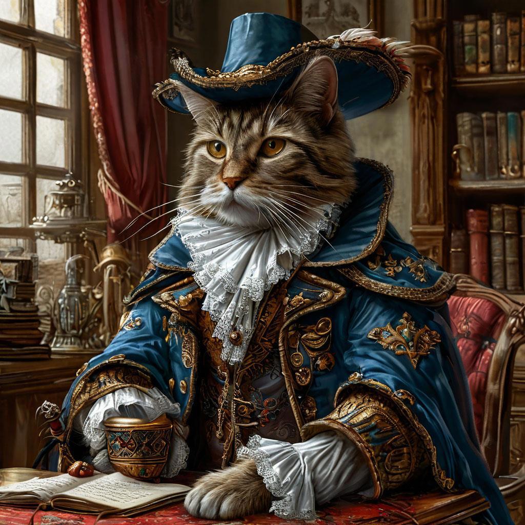 Писатель любил прерывать предложение на полуслове, чтобы потом было легче возвращаться в сюжет. Он отложил карандаш и пошел на кухню заварить себе чай. Чай был с мелкими, молодыми сосновыми шишечками, очень ароматный. В эту минуту в окно постучали. Квартира была на четвертом этаже, но писатель не испугался: его друг Кот Баюн любил приходить через окно кухни. Писатель приоткрыл правую створку и впустил котика. Спрыгнув на пол, Баюн встал на задние лапы и вырос до человеческого роста. Он был одет в лакированные красные сапоги, темно-синий плащ с отливом, под которым был виден зеленый кафтан. Привычным движением сняв плащ, перчатки и широкополую шляпу, он открепил шпагу, чтоб не бренчала, и повесил всё на вешалку, которую для него прибил писатель на стене кухни. Тем временем хозяин квартиры достал из шкафа второй чайный набор и налил коту в чашку чай, а в блюдце – молоко.