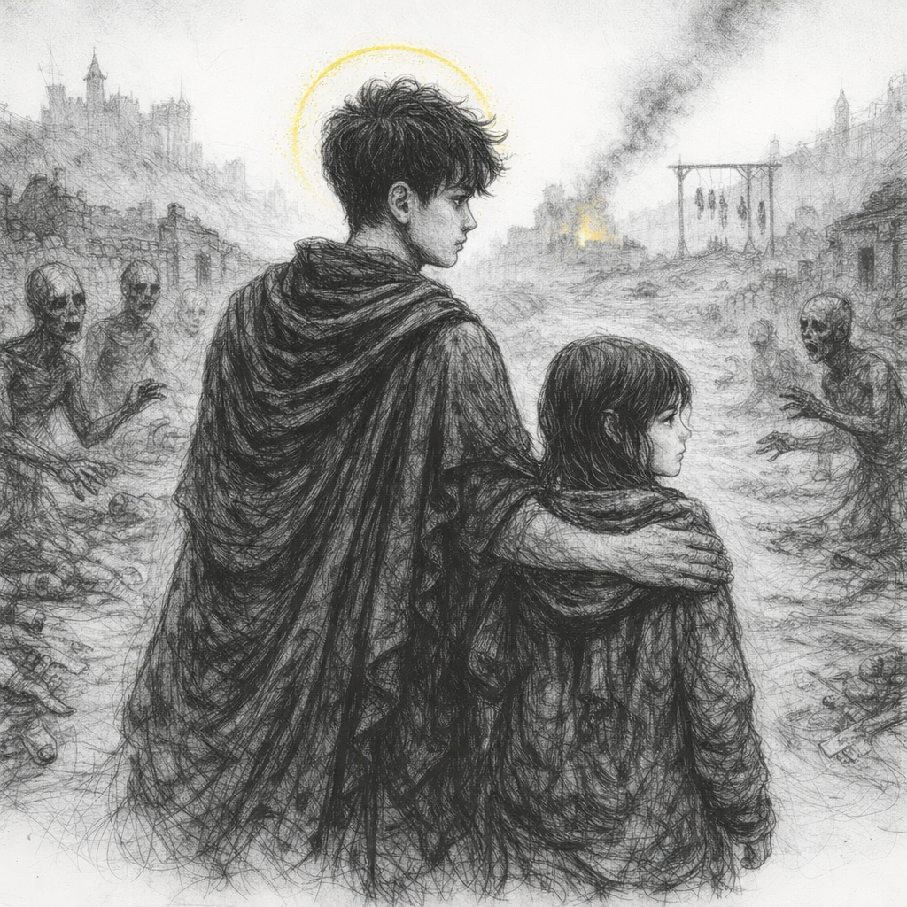 В окне одного из домов Сиэль увидел лицо. Парнишка, стриженный под горшок, как по старой моде стриглись монахи. Он смотрел перед собой как-то странно. Так же как тот мальчишка, которого распяли на столбе за стеной мантелетов. Задумчивый и...