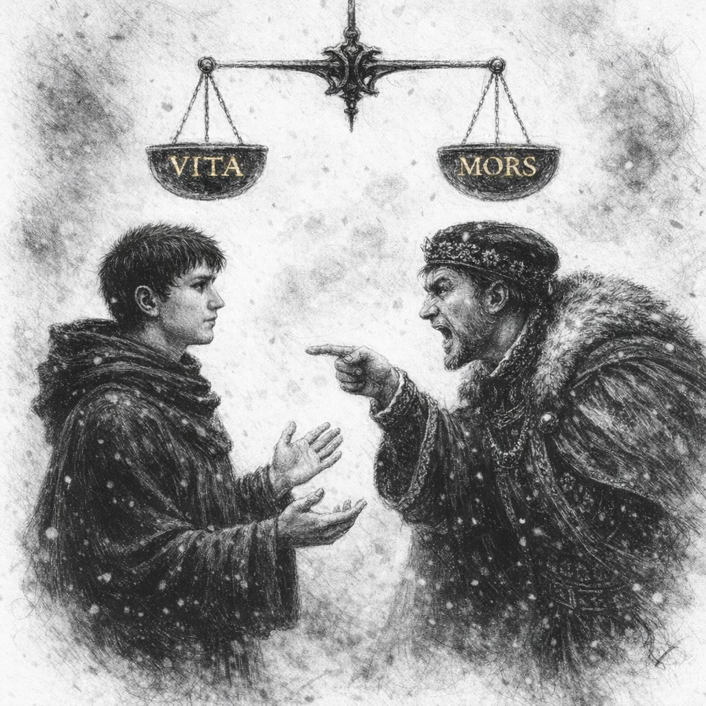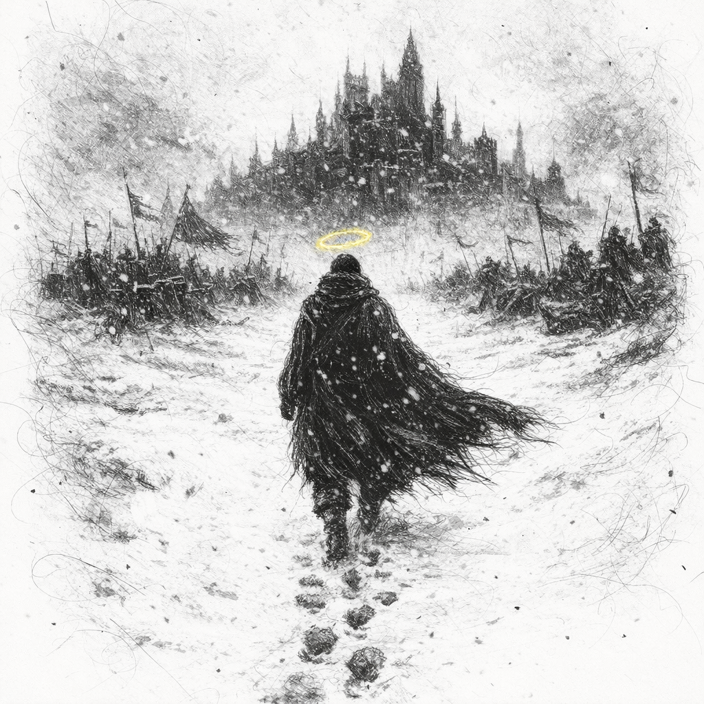 И взгляд на заснеженный Лимб, на бьющийся в конвульсиях колокол. На мальчишку в холщовом плаще, чье лицо скрыто в тени капюшона...