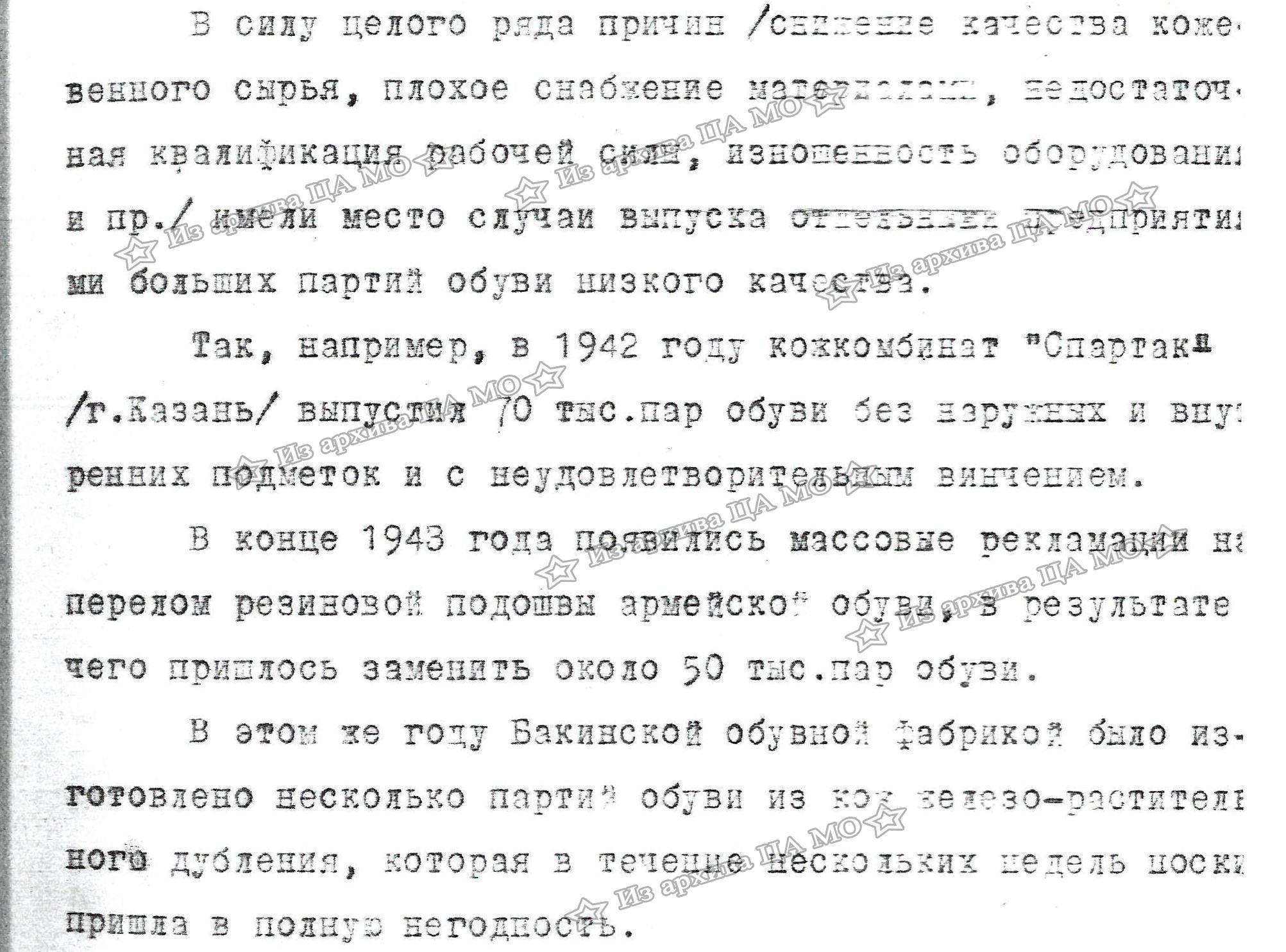 И конечно же острую нехватку квалифицированных обувщиков, ушедших на фронт, пусть даже и в мастерские по ремонту вещевого имущества, компенсировать некем. И обучать долго, дорого, а случаи брака не были редкостью.