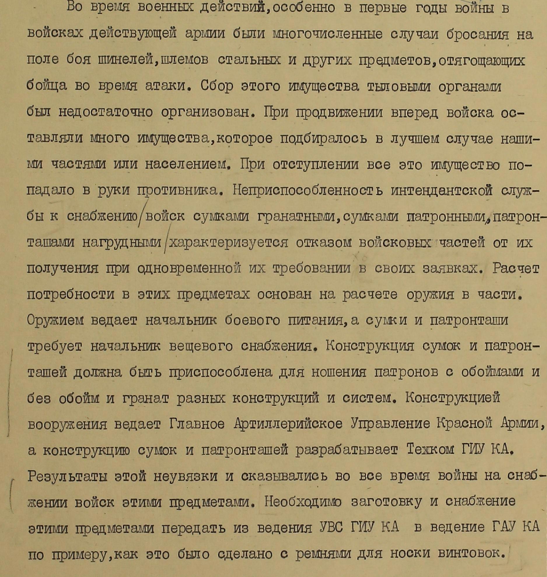 Объективно потворствуя развитию потерь и беспричинной утраты снаряжения, старшие начальники не могли по-видимому понять, что восполнение таких больших количеств потерянного снаряжения исключительно трудная задача, а в то же время стальной шлем, лопата и шанцевый инструмент с наступлением весны приобретут особое значение для сохранения жизни бойцов и уменьшение боевых потерь в личном составе.»