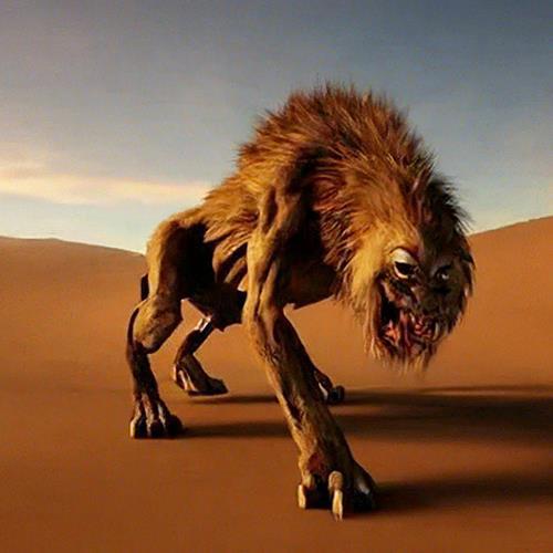 Герои второй день топают по про́клятой пустыне, где нет ни травинки, ни животинки, ни оазиса, и встречают львиноподобного хищника, который собирается ими потрапезничать. Гривастый монстр размером с быка переростка. Хвостом он бьёт по упругим бокам, его холеная шерсть блестит на солнце, могучими лапами он роет песок, выказывая агрессию. В общем, красавец, а не зверь! Вот только чем он питается, живя в центре про́клятой пустыни, где нет животных? Неужели так отожрался на песочных куличиках, что шерсть сияет и грива лоснится? Или герои здесь появляются так часто, что лев даже схуднуть не успевает?