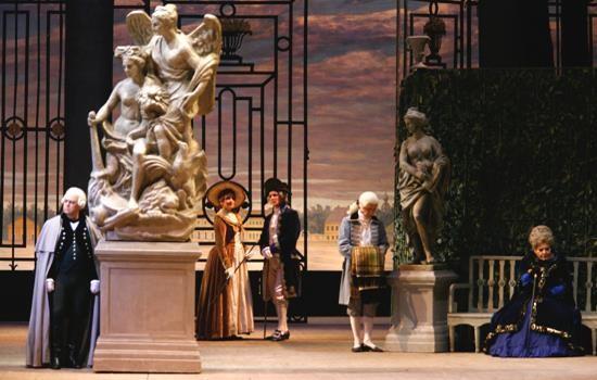 А вот что их разделяет. Во-первых, в опере Чайковского нет и намека на готику. Скорее местами слушатели окунаются в стиль барокко. Ведь действие намеренно перенесено в екатерининскую эпоху: это позволяет услышать положенные на музыку стихи Державина, Батюшкова, Жуковского, фрагмент оперы французского композитора ХVIII века Гретри «Ричард Львиное Сердце», увидеть изящную пастораль «Искренность пастушки» и даже, в сцене бала, фигуру самой Екатерины.