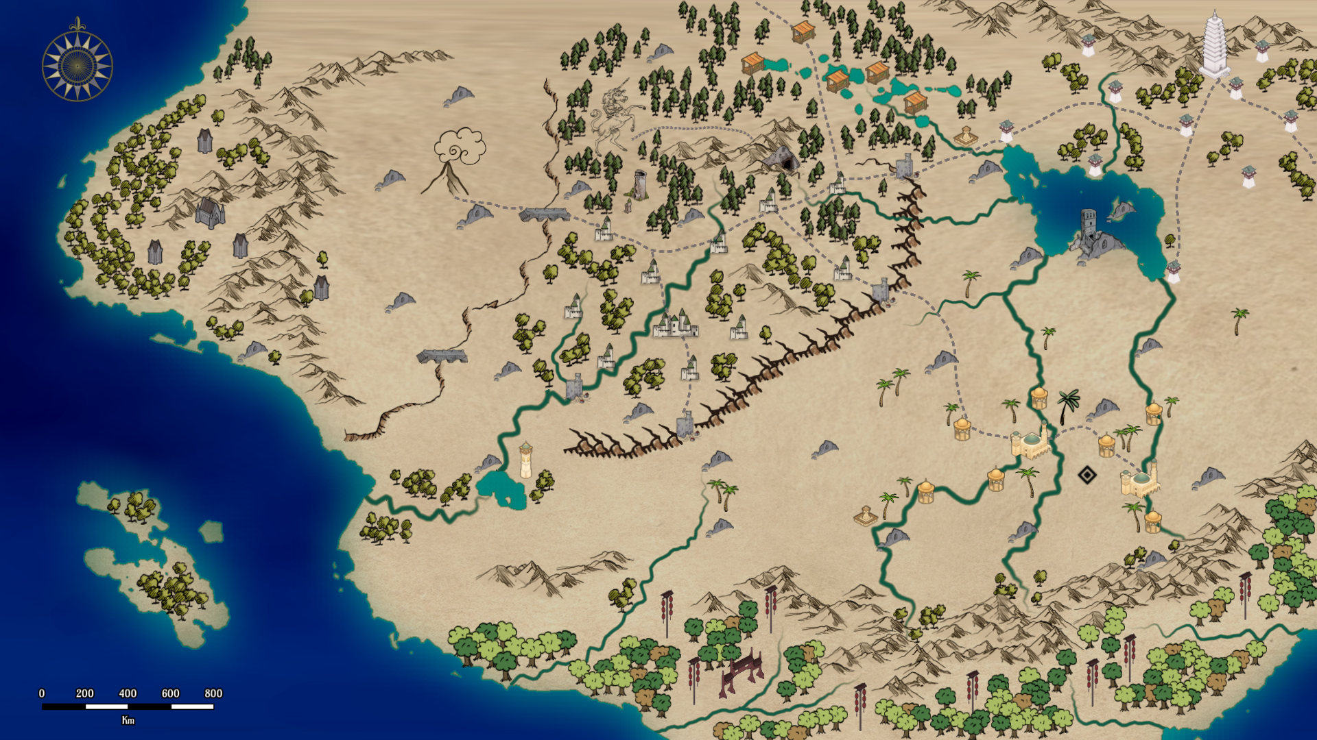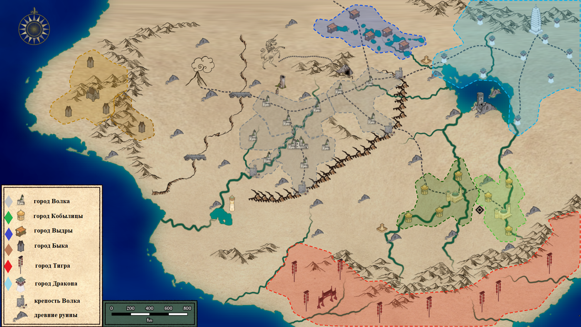 От автора: я нарисовал карту мира Аларис, как его сейчас представляю. Возможно, со временем что-то изменится, но не сильно. Это не весь мир, на карте нет севера и дальнего востока, но большая его часть, в которой сейчас странствуют герои. На карте указаны горы, реки, моря, крупные озёра, города, руины, тракты, а также некоторые примечательные места, которые встречаются в книгах. Растительность, климат, и названия пока добавлять не стал, чтобы не перегружать деталями. Карта не в масштабе, но приблизительное сходство с реальными расстояниями есть (как на старинных картах в средневековье).