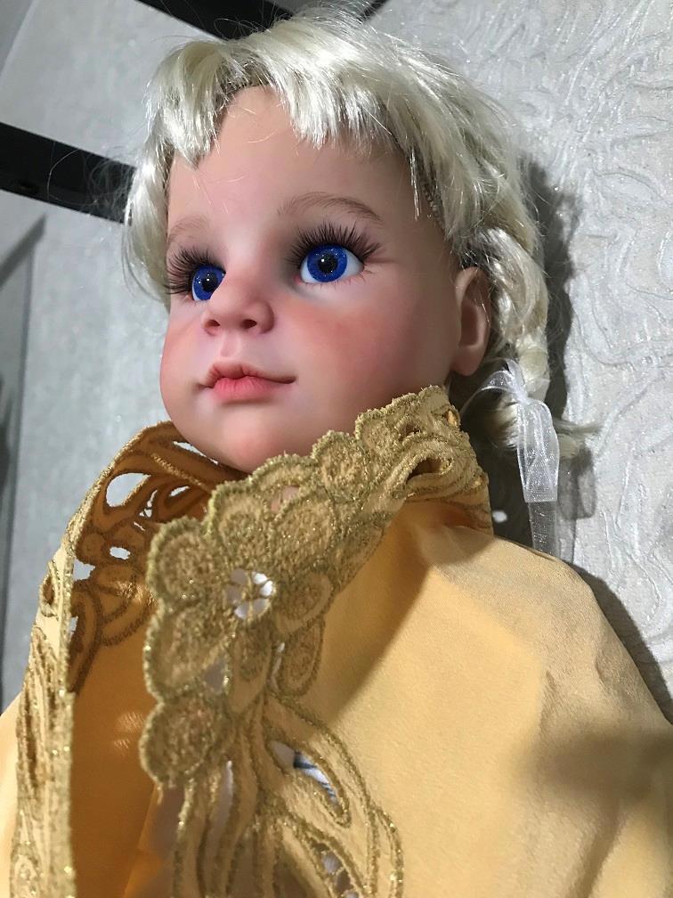 Подняв голову куклу, мужчина, слегка сжал её, и краска, нанесенная на лицо, тут же потрескалась.