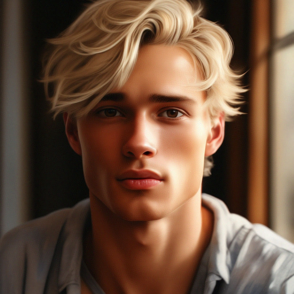 Рози видела перед собой высокорослого мужчину, с безумным размахом плеч, длинными поджарыми руками, на которых виднелись упругие вены, и заканчивались они натренированными, благодаря музыке, пальцами. Оттенок его интересных глаз Рози назвала бы скорее – чайным . Что-то между зелёным и светло-карими, иногда радужка его глаз напоминала девушке позолото, особенно, когда они бликовали на солнце. Вытянутый и немного острый к концу нос по форме напоминал треугольник. И слегка припухлые губы, что словно в призыве слегка приоткрылись.