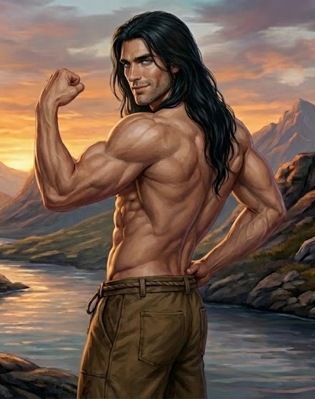 Под порванной серой одеждой угадывается мощь. Сухое, жилистое, хорошо натренированное тело воина или... рабочего, привыкшего к тяжелому труду. Широкие плечи, сильные руки, обтянутые кожей мышцы. Даже в этих лохмотьях, стоя на коленях, он выглядит сексуально. Опасно.
