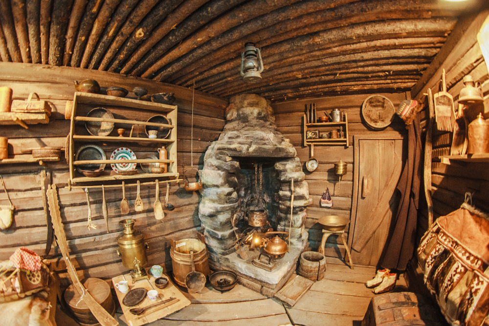 Стены из земли были укреплены деревянными балками, кое-где осевшими в такой же земляной пол. В углу охапка сена и склад дров, странно криво сколоченный сундук. Грубо сложенный очаг у стены, узенькое окно над рекой и разложенные на полу инструменты неизвестного назначения рядом со странной металлической штукой, похожей на перевернутый утюг мамы Олава. На балках прибиты низкие полки, уставленные железными предметами.