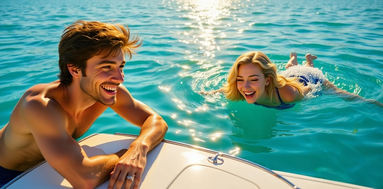 Когда наверх поднялась Ризи,Шилла с блестящими глазами и улыбкой на пол лица правила катером.