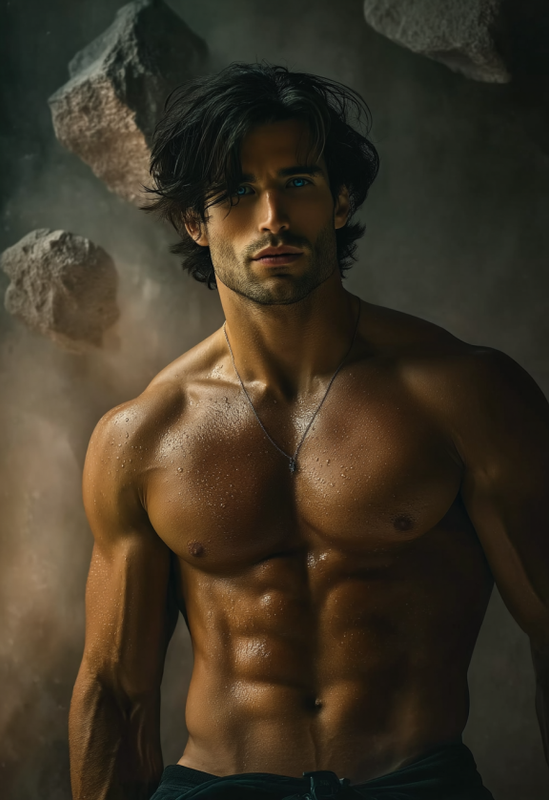 Темная мантия разорвана на груди, и под ней видна бронзовая, гладкая кожа, обтягивающая совершенные мышцы. Ничего лишнего. Только мощь, уверенность, почти первобытная грация хищника. Словно его выковали из грозы и звездного света.