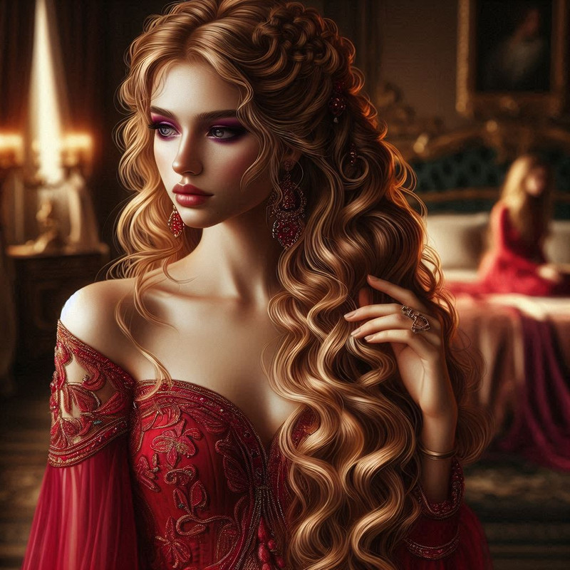 Я должна выглядеть хорошо перед мужем. Но увы, мою тревогу не скрыть, лицо такое бледное, что сапфировые глаза, обычно искрящиеся, кажутся особенно большими и печальными. Но в этой хрупкости есть своя красота. Моя гордость — это густые и блестящие золотистые локоны. Ройнхард обожает пронизывать их пальцами.