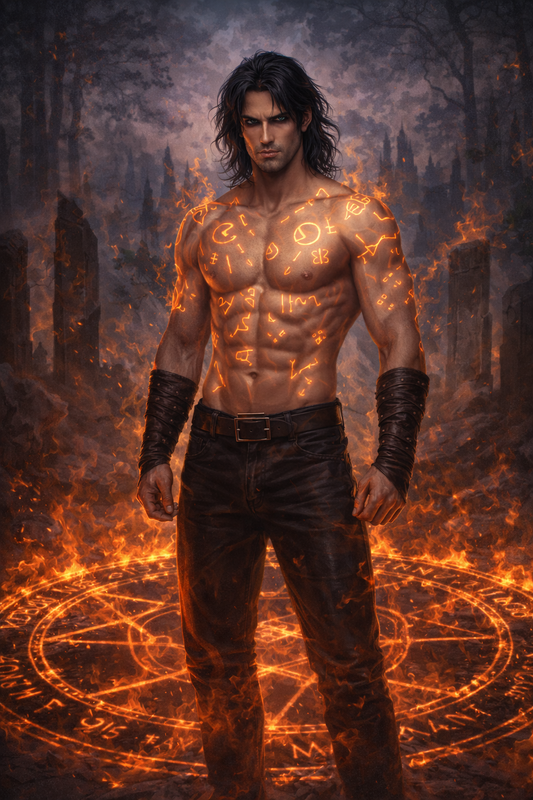 Жидкость пролилась на тело Рэйза. Письмена вспыхнули багровым пламенем. Каждый знак загорелся, и под кожей проснулись жилы раскаленной магии. Пламя пробежало по линиям символов, соединяя их в единую сеть. Теперь это был не рисунок, а проводник силы.
