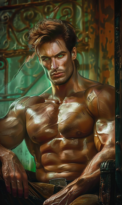 Первое что бросается мне в глаза - торс: ни одного изъяна, лучи солнца, просвечивающиеся сквозь шторы, падают на его мускулы и подчеркивают каждую идеальную мышцу, каждый кубик на его прессе будто нарисован под линеечку, всё ниже пупка прикрыто полотенцем.