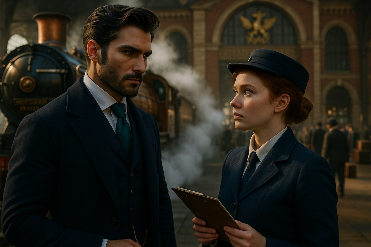 Пассажиры в дорожных костюмах спешили к перронам. Дамы в дорожных платьях держали в руках изящные саквояжи.