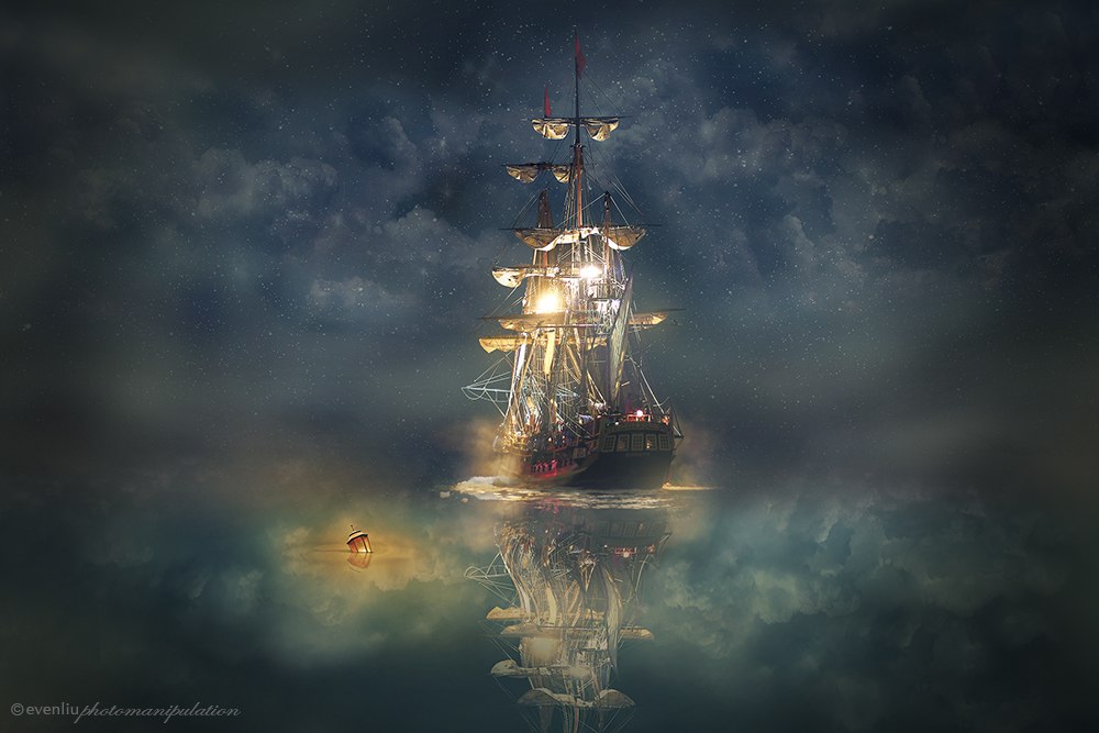 Буря бушевала десятый день, звёзды разбили строй, назавтра пообещали штиль. На другом берегу плот унесли на склад. Никого на нём не было, его ветром унесло от пристани по другую сторону Гор. Пока двое в кабинете гадали на призрак плота-дозора, в брешь на свет Чужого маяка ушёл звёздный корабль, да только фонарь потерял в облачной воде.