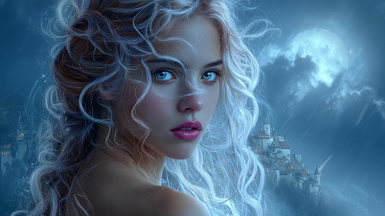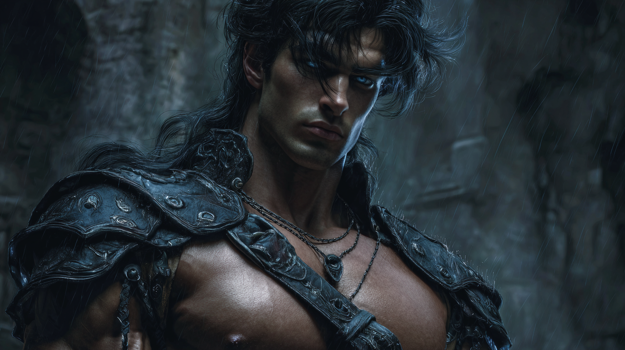 Пронзительно-синие глаза, холодные, будто высеченные изо льда, впивались в меня так, что казалось — они прожигают до самых костей. Чёрные волосы, блестящие от дождя, ниспадали чуть ниже висков, и даже в сырости они казались густыми, тяжёлыми, с едва заметным металлическим отливом. Всё в нём дышало породой и властью: правильные строгие черты лица, прямой нос, сжатые губы и эта нечеловеческая собранность, драконья кровь и красота, которой хотелось любоваться и которая одновременно пугала до дрожи, потому что в ней не было ничего человеческого.