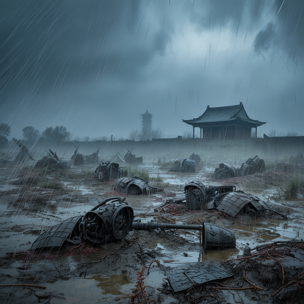 Часы тянулись, как вечность. Дождь не прекращался. Земля под ногами превратилась в кровавую трясину, усеянную телами. Раненых было так много, что их уже некому было выносить с поля боя. Ли Чжао чувствовал, как силы начинают покидать его. Рука, сжимавшая меч, онемела от напряжения, дыхание стало прерывистым, старые раны заныли под промокшей одеждой. Но он не мог показать слабости. Он продолжал сражаться, убивать, командовать.