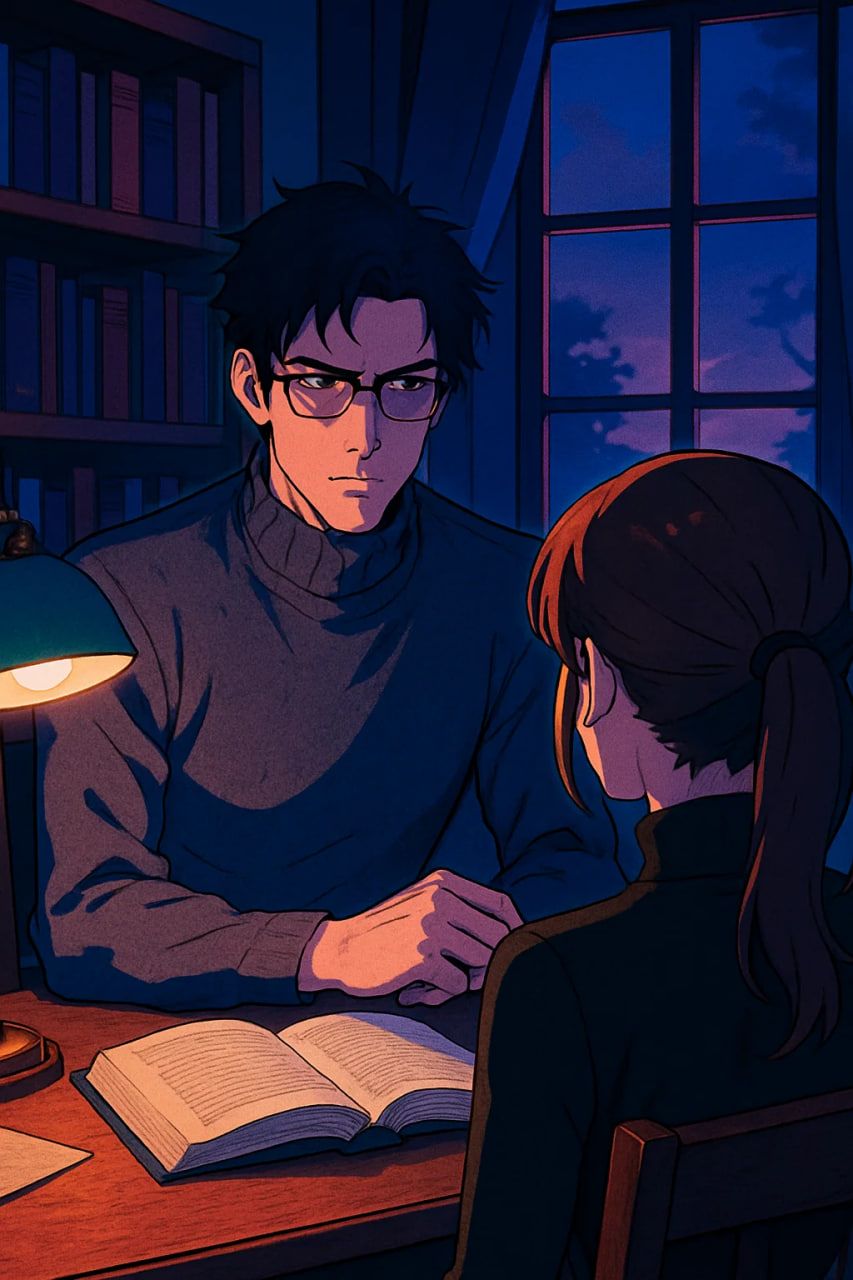 Эванс прочищает горло и возвращается к обсуждению, но атмосфера в аудитории уже не такая лёгкая. Студенты замечают перемену в его настроении, и по кабинету прокатывается непонимающий шёпот. Речь профессора становится резкой и обрывистой, а его английский акцент звучит сильнее.