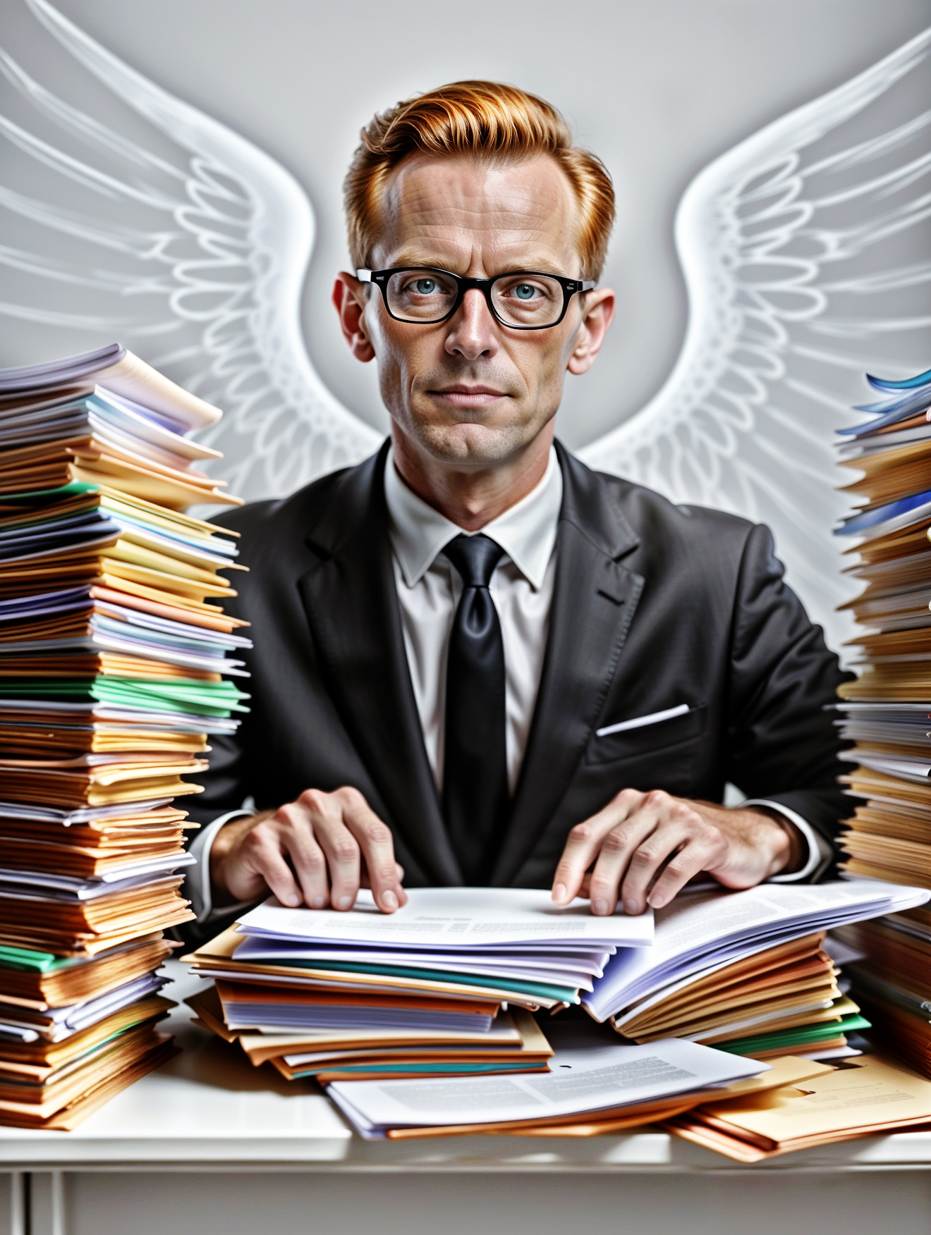 Кабинет был тот же, идеально белый, будто выскобленный мелом. Я растерянно огляделась, надеясь понять, что происходит. Безрезультатно. В руках всё так же мерцал чёрный конверт, а рыжий, всё так же обложенный бумажками, сидел за столом.