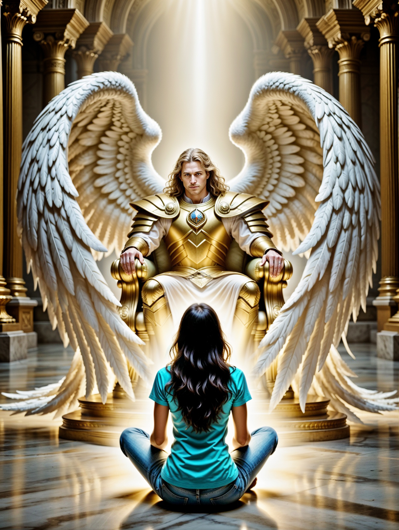 Перенеслась я красиво — на задницу, посреди огромного белого зала с позолотой, как в Ватикане или Лувре. Потолок расписан фресками, всё блестит и переливается. А перед моим носом, точнее, ногами, стояло просто огромных размеров позолоченное кресло. Оно находилось на лёгком возвышении — в пару ступенек, и тоже позолоченных. В нём сидел ну просто невероятной красоты мужик. Такой невероятной, что аж глаза слепило, которые я, собственно, и потёрла в надежде прозреть, но нет.