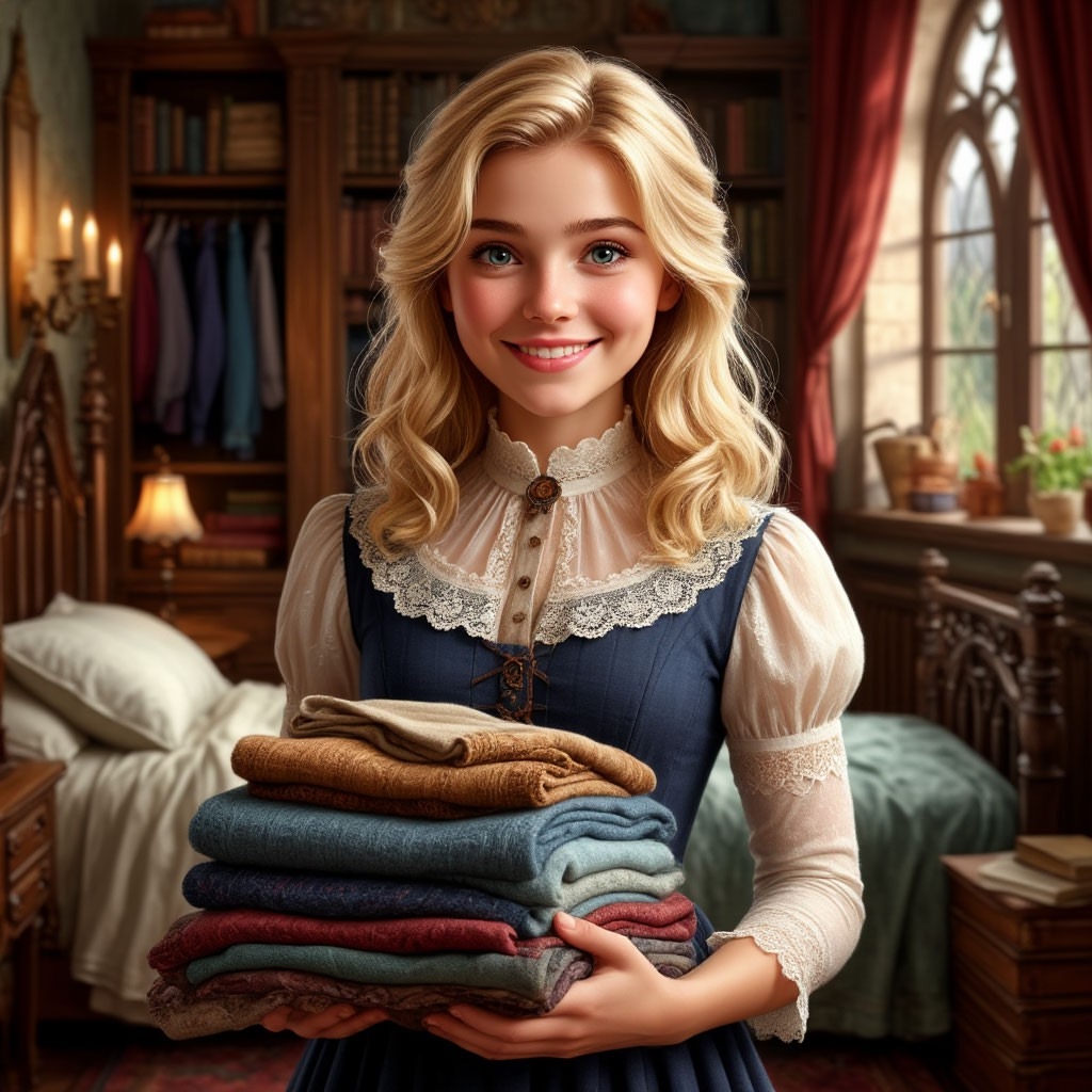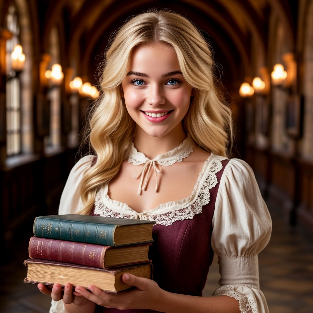 Она была одета в красивое платье с ажурным воротничком, а в руках держала стопку книг и тетрадей. Милая блондинка приветливо улыбнулась: