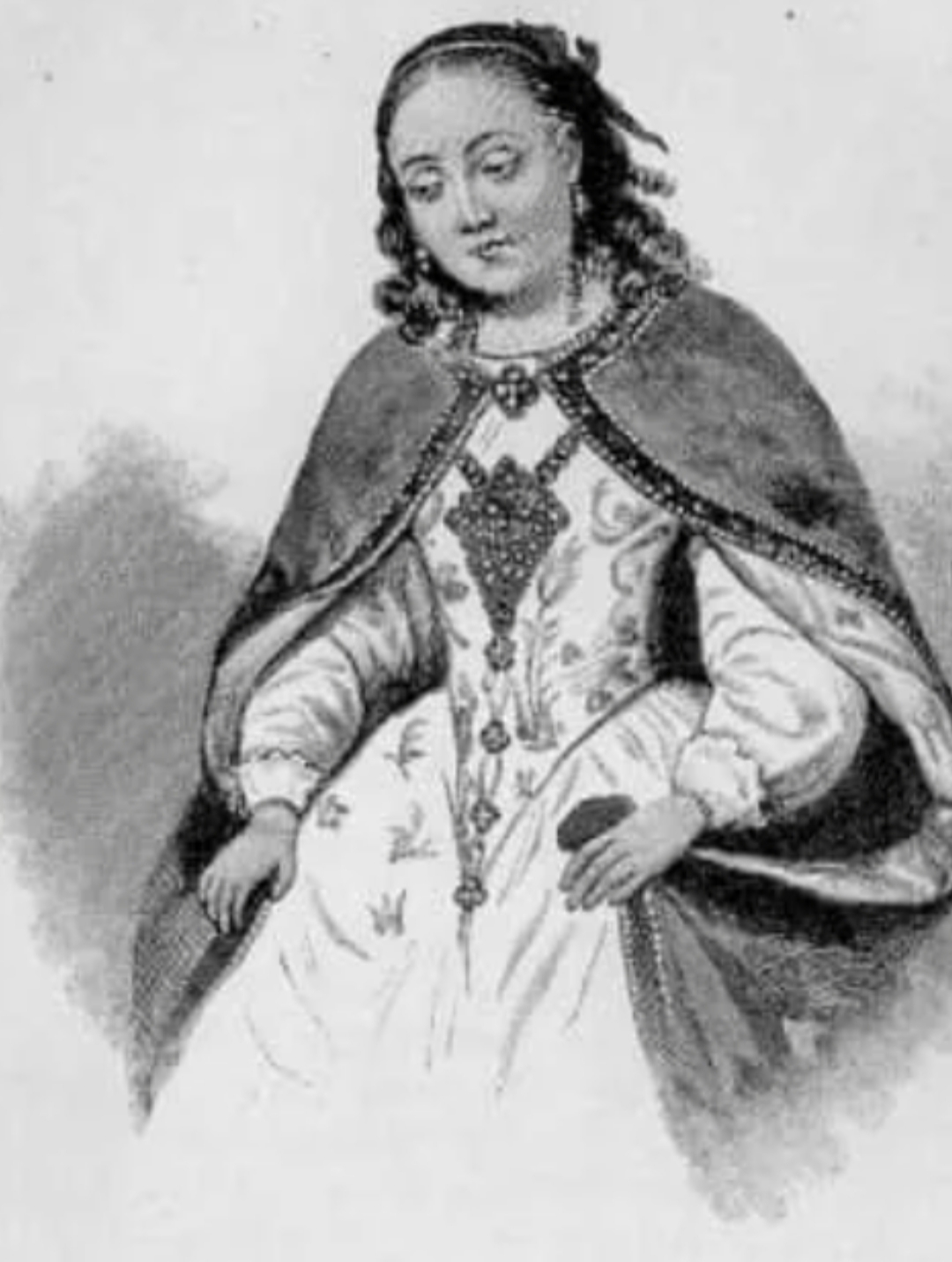 принцу Франции Генрику Валезу и принцессе Польши Марие Ягеллонке. Молодая Польская принцесса в праздничном платье и в веночке из драгоценных камней.
