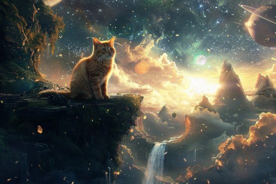 «Кажется, я кошка... Шерсть только странная. Блестит, словно звёздное небо, с которого ещё не ушли полосы рыжего заката... Но где я?»