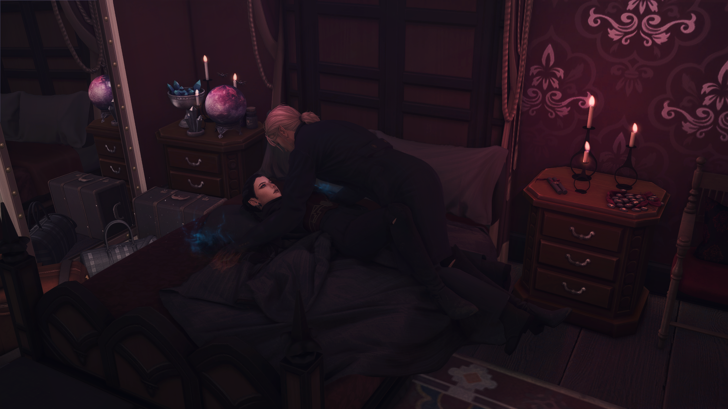 Его атака, мой блок. Ещё атака. Вспышка, толчок, чувство полёта и вот я лежу на кровати, придавленная сверху его телом и взглядом.