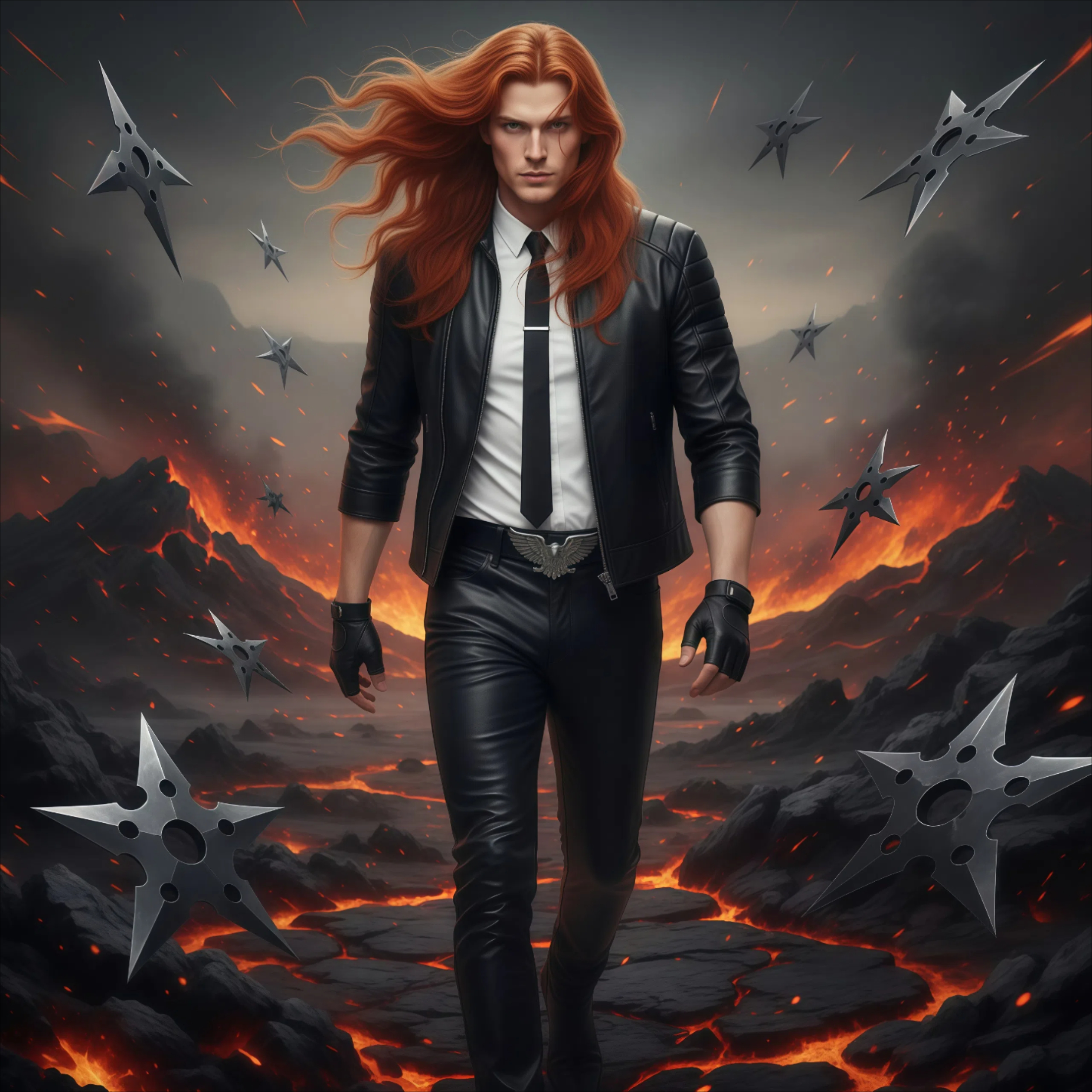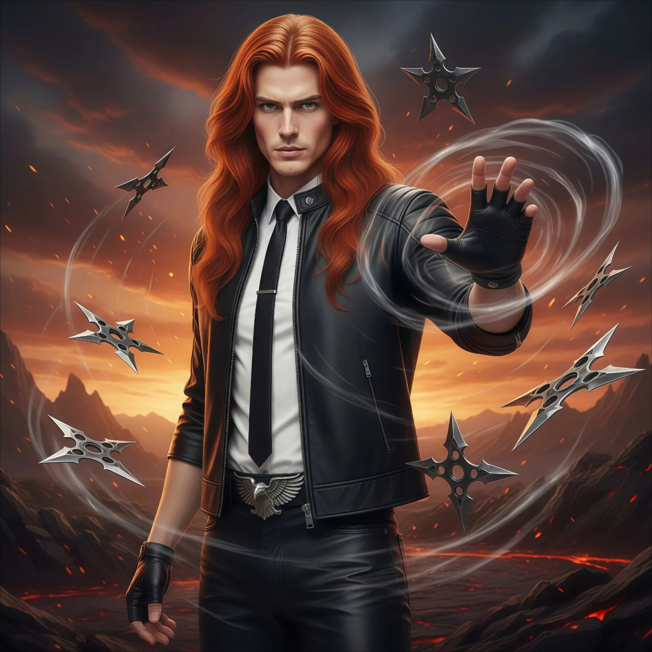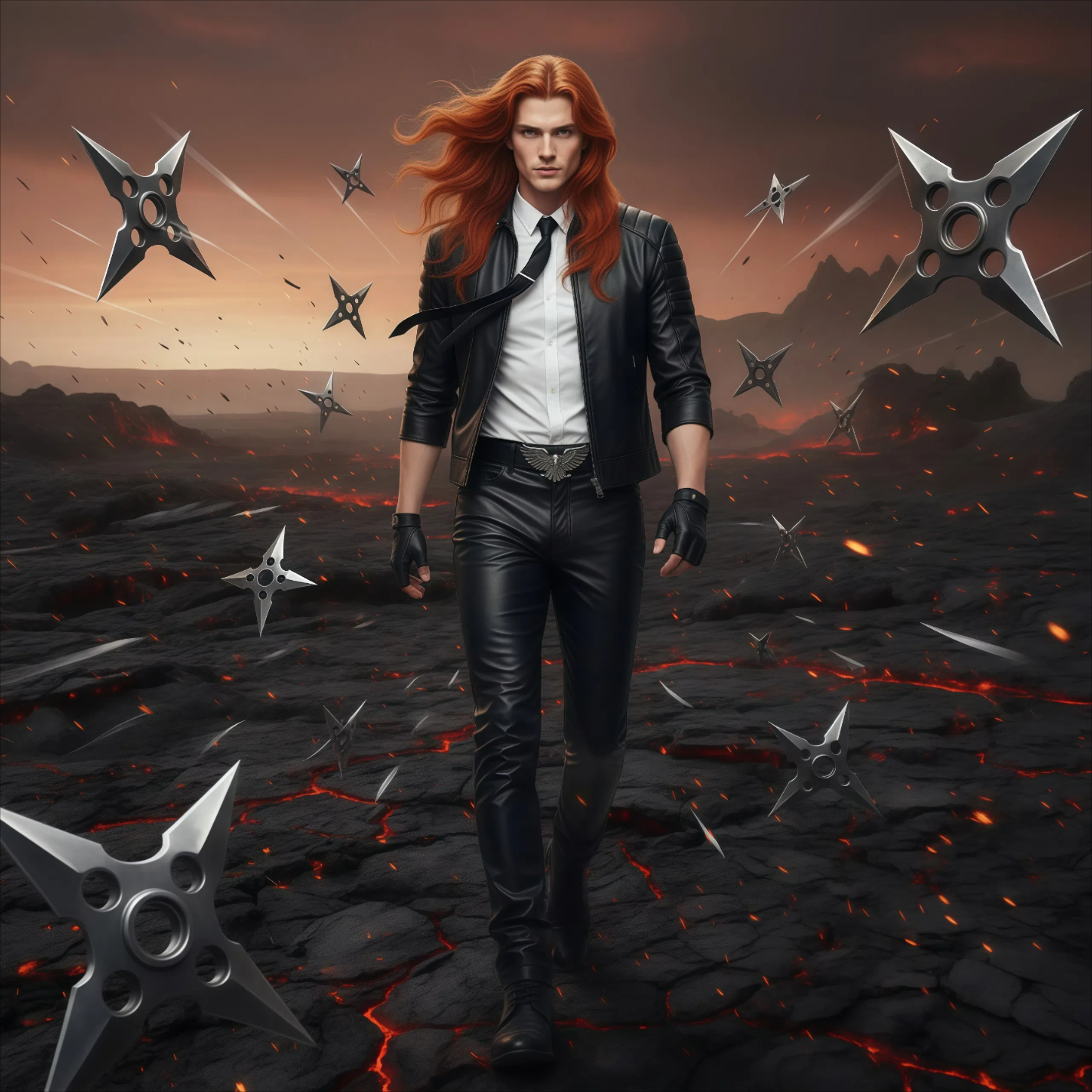 Мужчина был одет в накрахмаленную белую рубашку со строгим тонким галстуком, черные кожаные штаны с регуляцией теплообмена и кожаную куртку с рукавами в три четверти. Так ему было легче управлять острыми предметами. Перчатки же защищали его от крови и остроты оружия, когда наставала очередь ловить его руками.