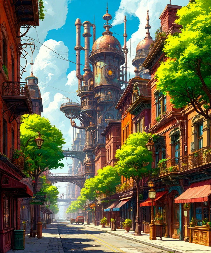 Механическое сердце Эврики билось ровно. Где-то внизу, под улицами, вращались гигантские шестерни, поднимая платформы для утренних дирижаблей. Над крышами лениво ползли аэростаты с рекламой зубных эликсиров и гаечных ключей. Свистки мануфактур сплетались с пением птиц, и никто никому не желал уступать.